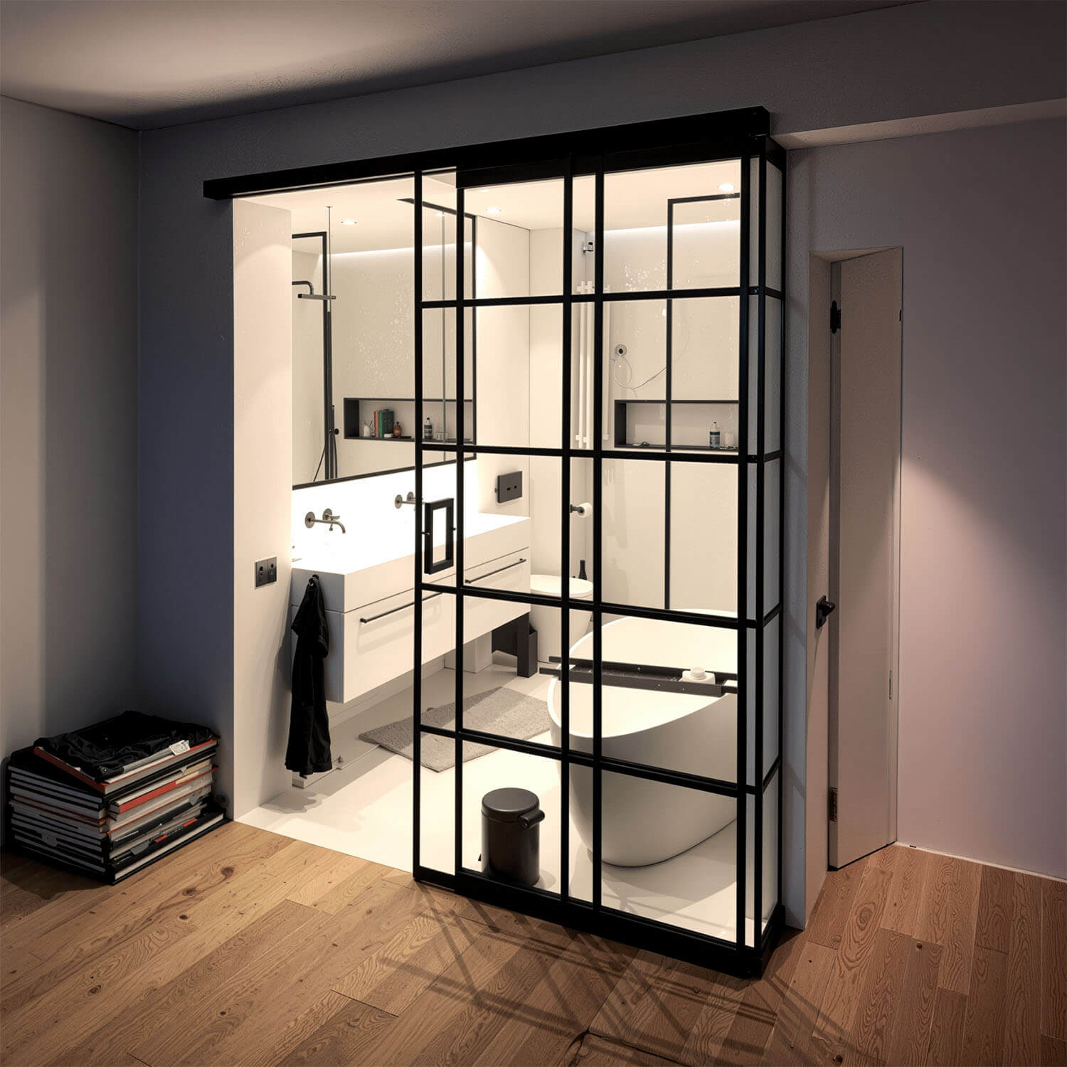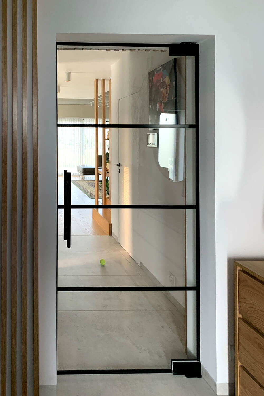 - Drzwi loftowe ze szprosami – hit ostatnich sezonów, który nadaje wnętrzom industrialnego, surowego charakteru.