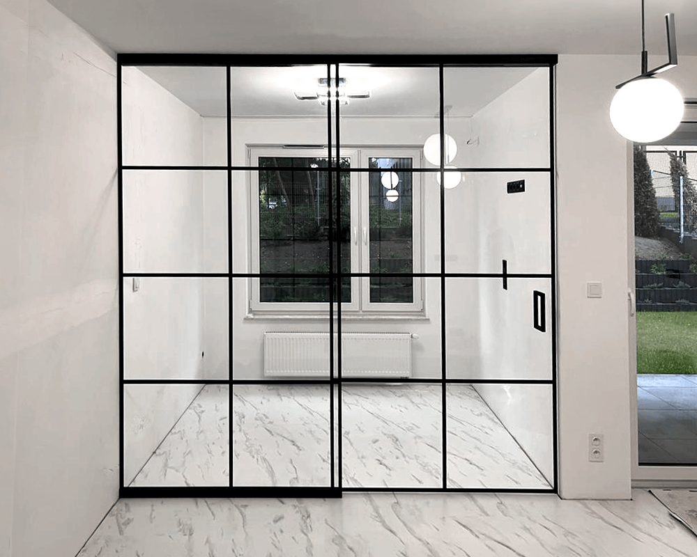 Drzwi szklane otwierane, przesuwne lub łamane w biurach, domach oraz mieszkaniach naszych klientów.