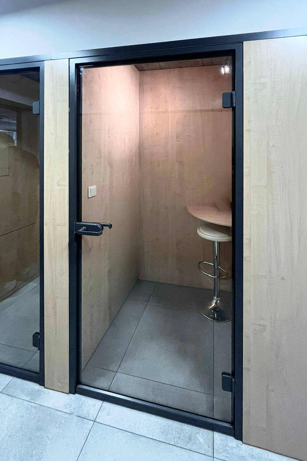 W przestrzeniach biurowych zabudowy i drzwi szklane na zamówienie są niezastąpione. Zapewniają niezbędne wyciszenie (izolacja akustyczna), sprzyjając skupieniu, a jednocześnie podtrzymują atmosferę transparentności i współpracy. Są łatwe w utrzymaniu czystości i niezwykle trwałe, co jest kluczowe w miejscach o dużym natężeniu ruchu.
